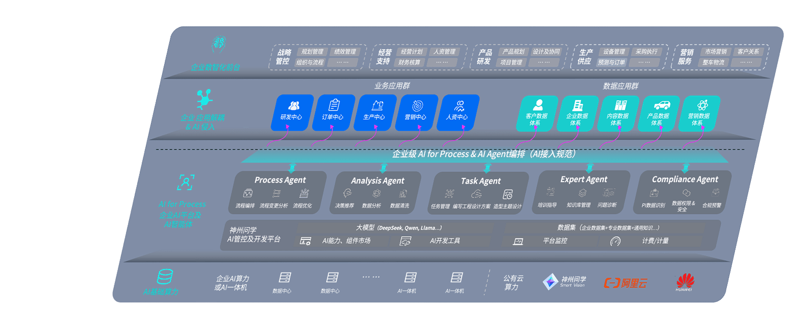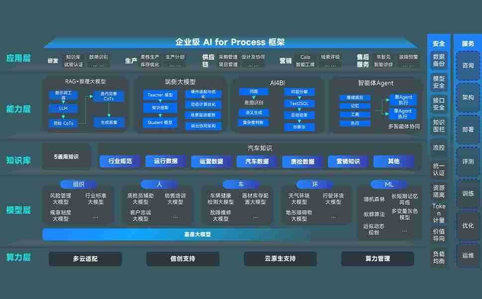 端到端的一站式AI工作空间深度融合了从企业战略规划到日常经营的全流程业务板块,,,,定向解决车企内部领域多、、、、部门多、、、链条长、、、、场景碎片化等难题,,支持车企快速构建以AI为核心的生产力写作体系,,,,实现任务执行与AI能力的无缝集成与交互